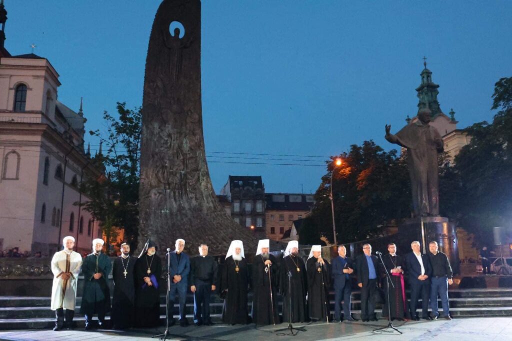 У центрі Львова 8 липня з нагоди 500 днів повномасштабного вторгнення росії і понад 9 років нашої відважної боротьби відбулася спільна екуменічна молитва з найвищим духовенством українських церков, з Президентом України Володимиром Зеленським та Прем‘єр-міністром Денисом Шмигалем.
