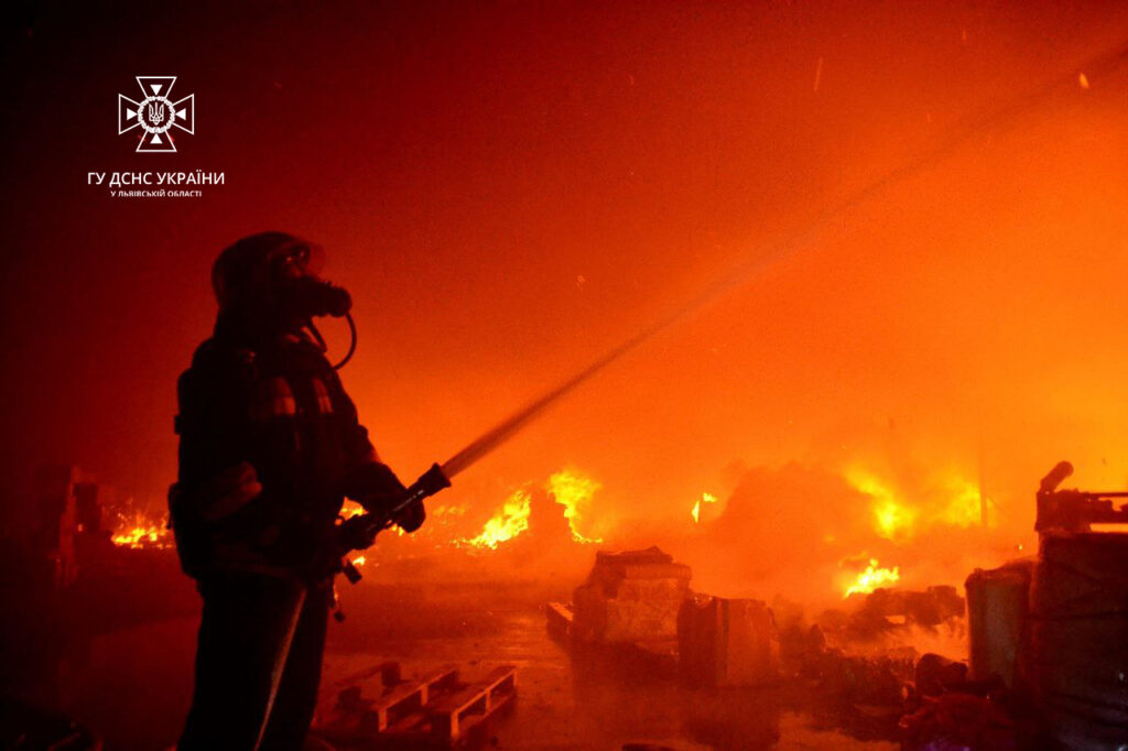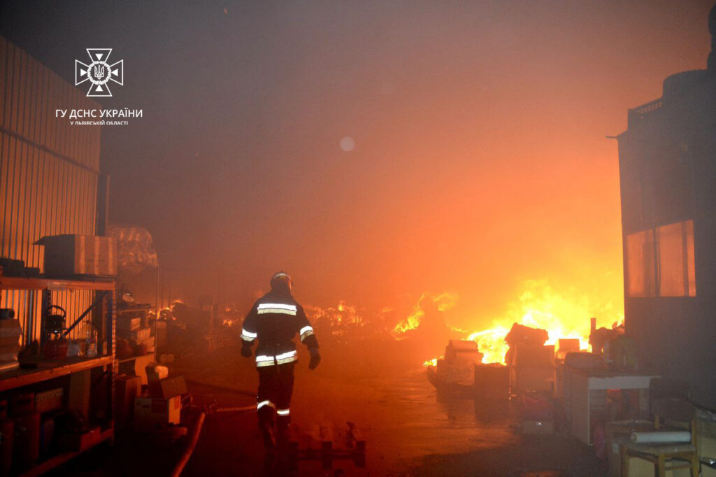 - 90 рятувальників гасили пожежу на складі побутової хімії у Львові, фото ДСНС Львівщини