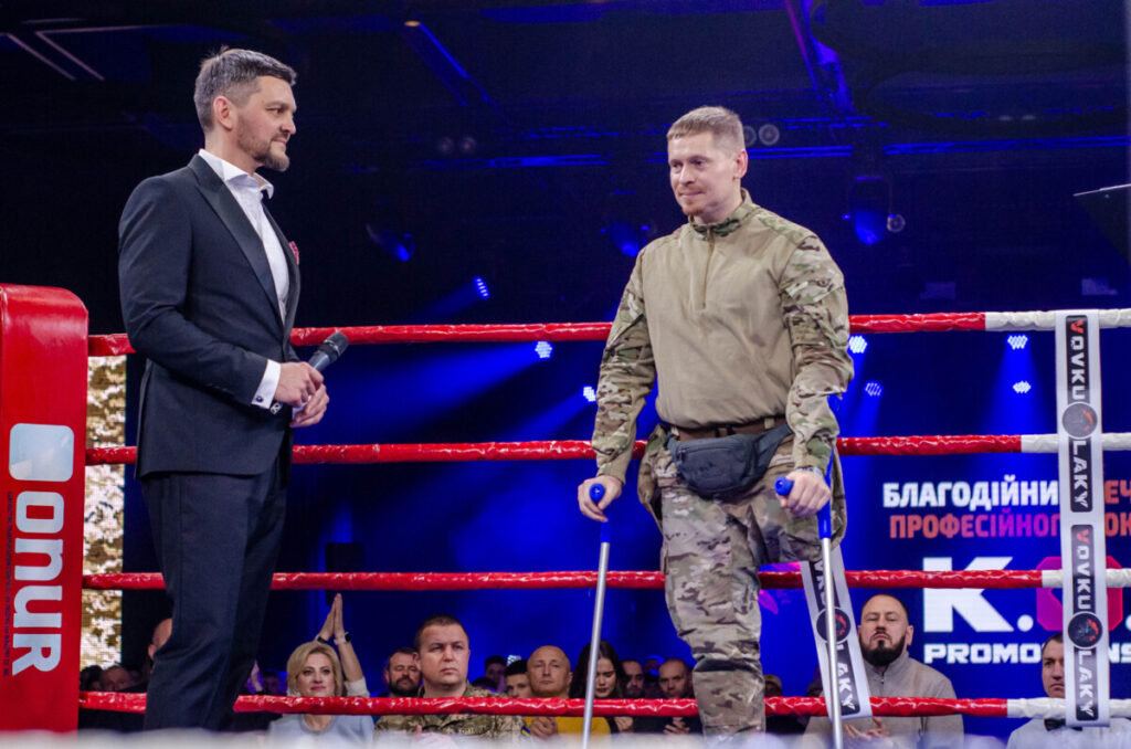 Окрім неймовірних спарингів на ринзі, вечір був сповнений патріотизму, підняттю важливих ситуацій сьогодення – невпинній підтримці українських захисників. Допомагали організатори не лише військовим на фронті, а й бійцю Держприкордонслужби, спецпризначенцю Юрію Кулиничу, який минулого року отримав важке поранення, як наслідок – ампутація лівої ноги.