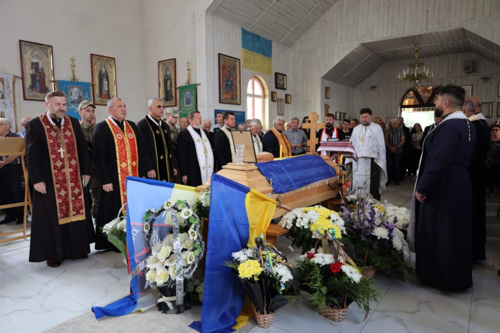 Чин похорону розпочався у Церкві ПЦУ Святої Тройці, де присутні помолилися за упокій Захисника. Дорогою до останнього місця спочинку траурна процесія зупинилась біля будинку, де народився Володимир, аби віддати молитовну шану воїну та востаннє попрощатися.