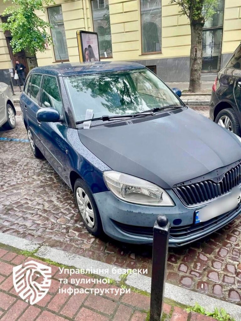📍вул. Княгині Ольги, 98А — паркування на велосипедній доріжці;