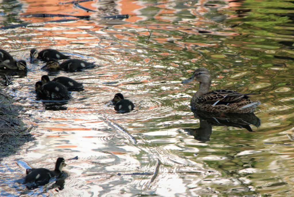 Мешканці Шевченківського району Львова, зокрема, вул. Панча та прилеглих територій, останні кілька днів мають змогу спостерігати не тільки за дорослими качками у озері, а й за качиним виводком, пише 4studio.