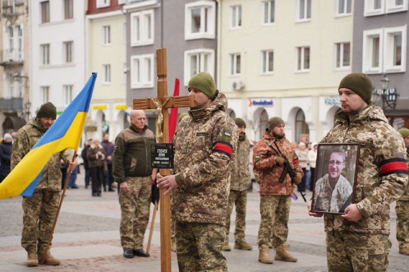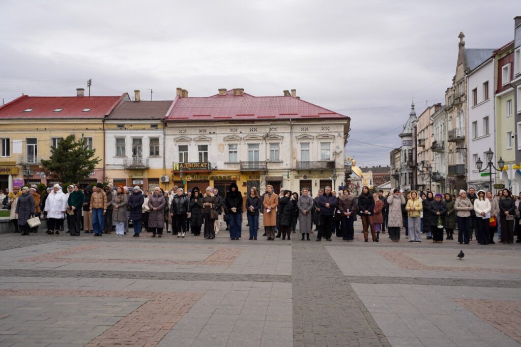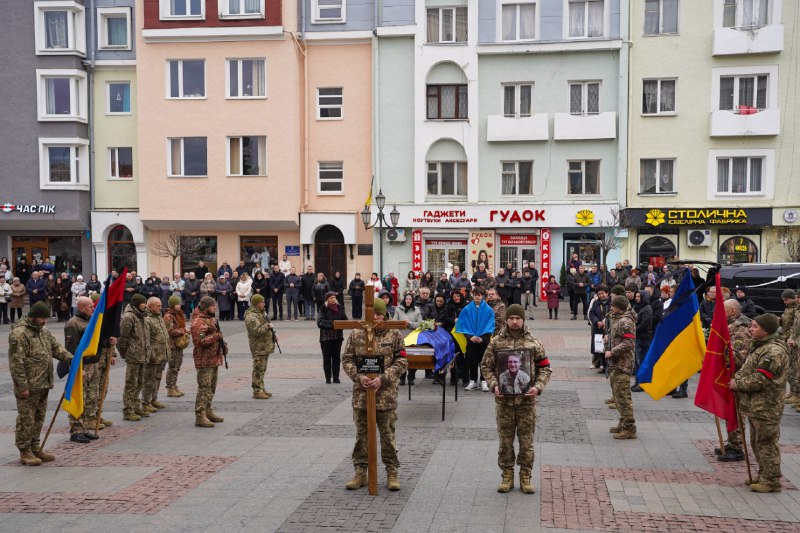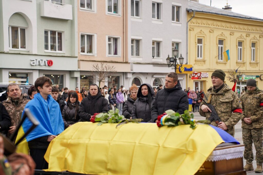 На площі Ринок провели загальноміське прощання за участі рідних, близьких, побратимів, керівництва громади та небайдужих мешканців. Присутні спільною молитвою навколішки вшанували подвиг воїна, який віддав за рідну країну найдорожче – власне життя.