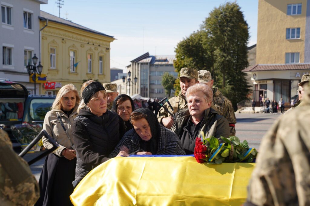 Вчора траурний кортеж з тілом полеглого захисника прибув до Дрогобича. Чин похорону розпочали сьогодні з рідного дому полеглого Героя. Звідти процесія попрямувала до центральної площі Ринок для загальноміського прощання.