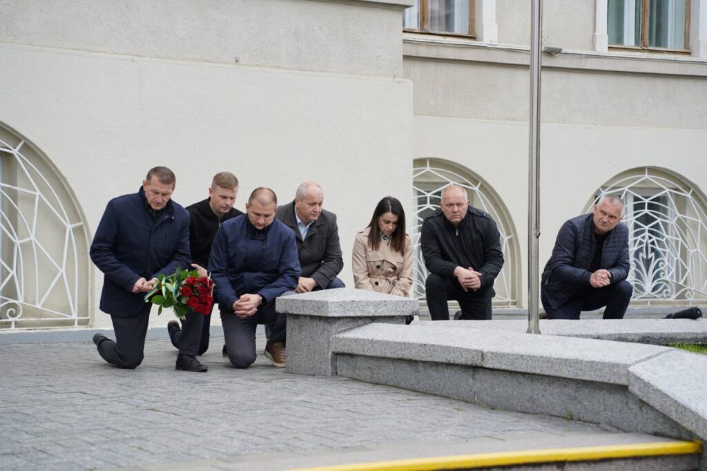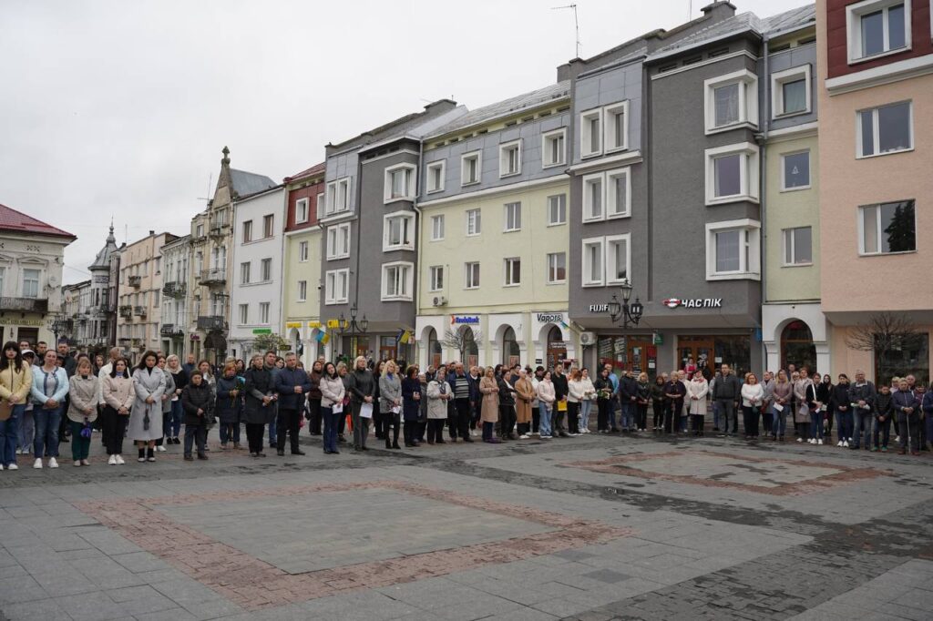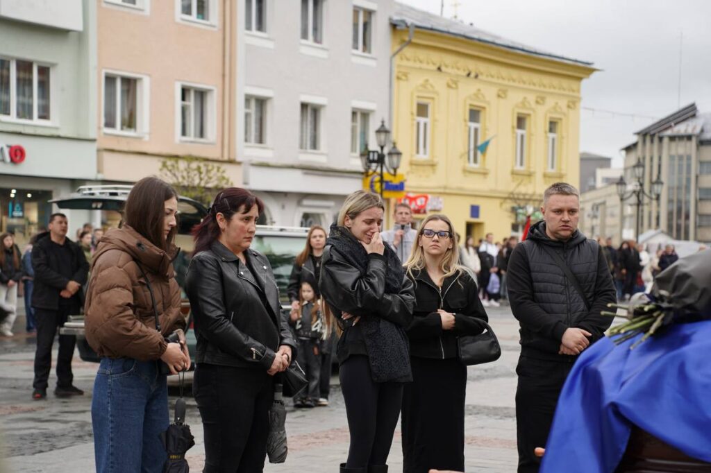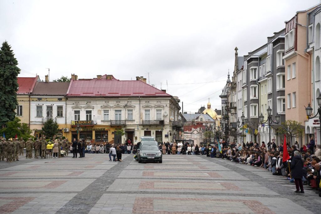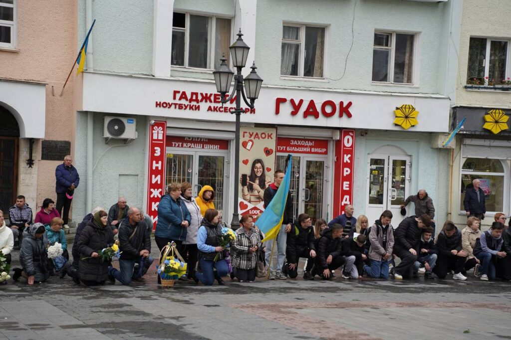 З перехрестя траурний кортеж попрямував до площі Ринок, де провели загальноміське прощання, за участі керівництва Дрогобицької громади, рідних, близьких, військовослужбовців, ветеранів війни та всіх небайдужих. Всі присутні навколішки вшанували подвиг воїна, який віддав за рідну країну найдорожче – власне життя.