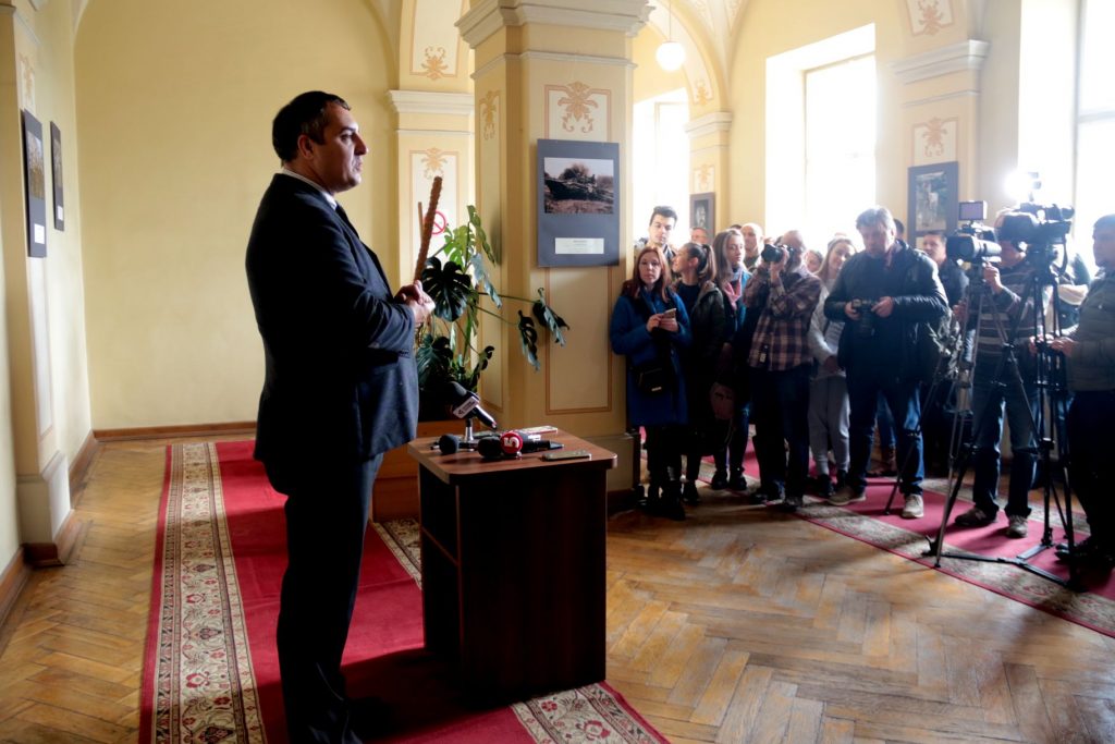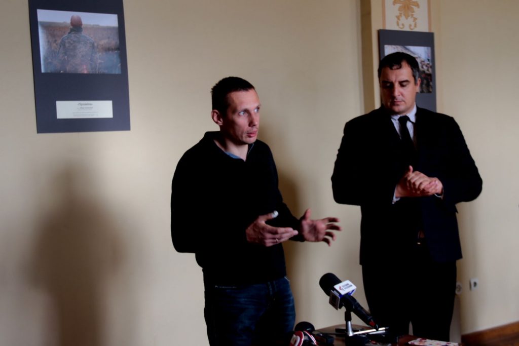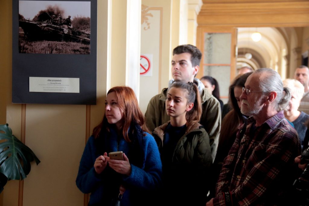 «Приємно повідомити, що аналогічна виставка відбувається у Луганській обласній військово-цивільній адміністрації. Це означає, що медійні обміни в дії!, – зазначив голова обласної ради Олександр Ганущин. – За час поки готувалася виставка сталася подія, яка нагадує нам – в країні війна триває, вона не завершена, а на Сході гинуть наші захисники. Один з фотокореспондентів, якому лише 23 роки, подав свої світлини на конкурс, і виконуючи завдання, підірвався на російській міні. Він не загинув, але втратив ногу. Сьогодні цю виставку ми присвячуємо йому і усім Героям, які захищають нашу землю».