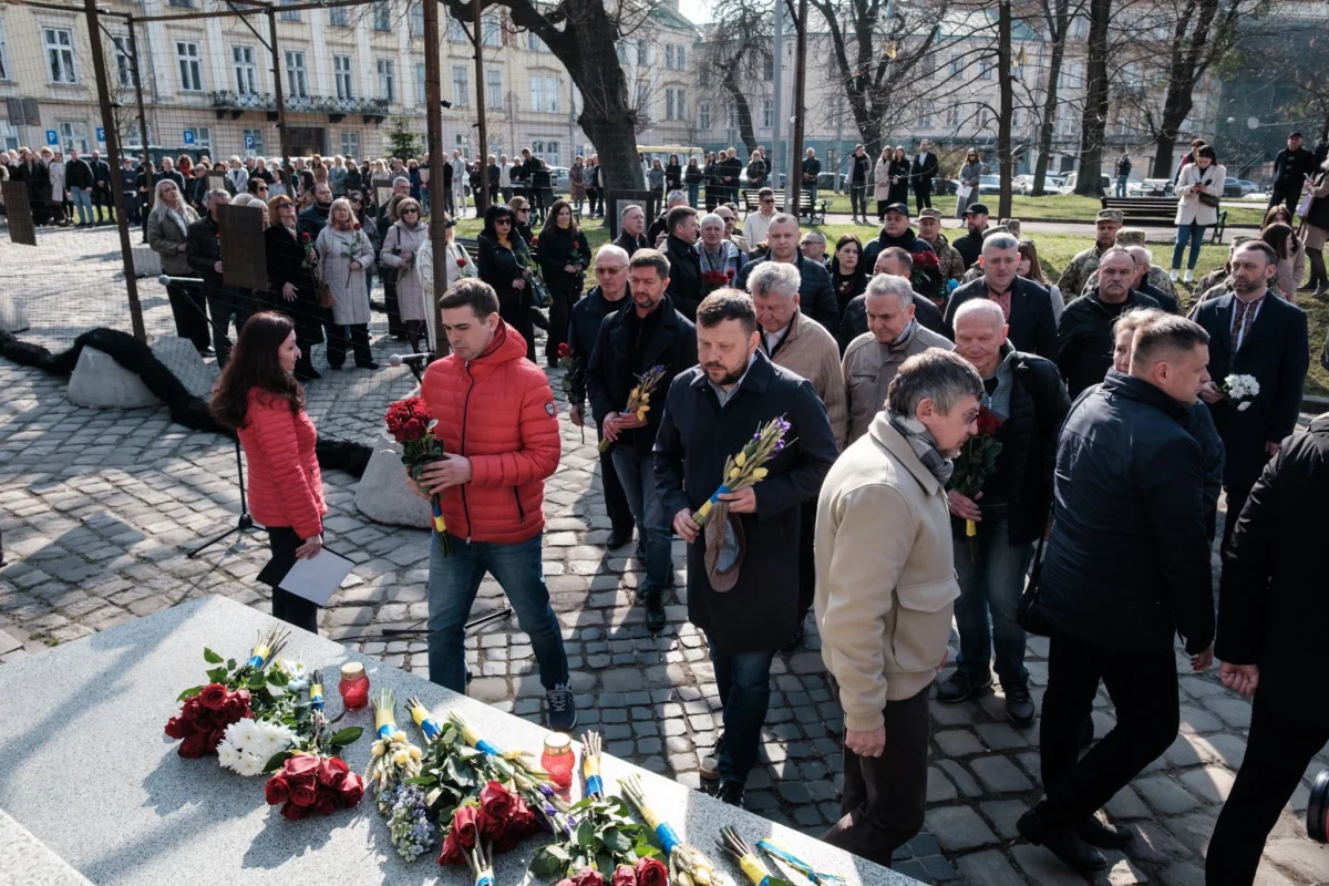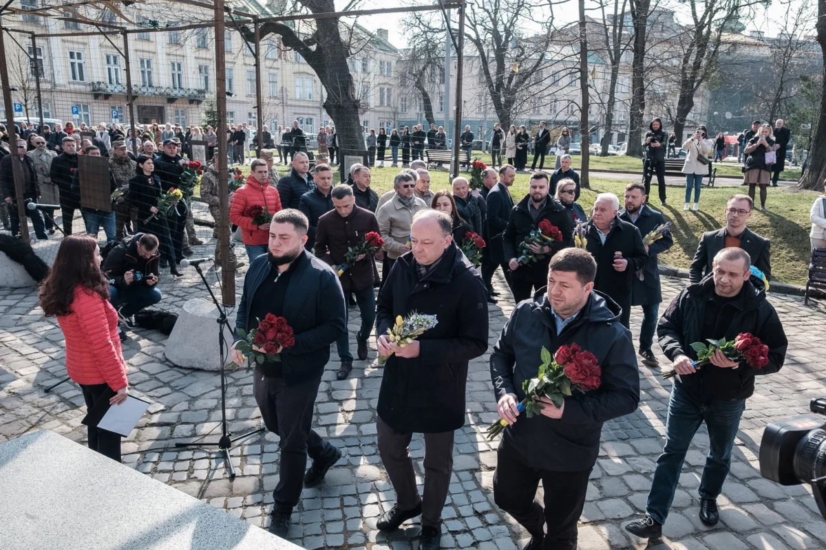 В.о. голови Львівської обласної ради Юрій Холод, керівництво ОВА, депутати обласної та міської рад, представники громадськості сьогодні, 25 березня, поклали квіти до пам’ятника Герою у сквері «На валах».