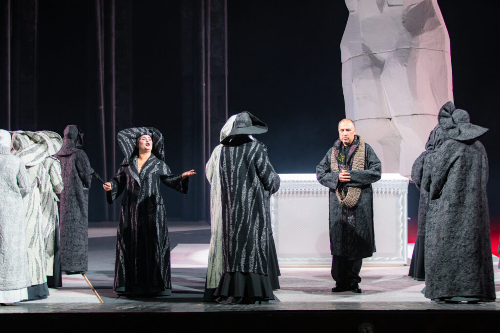 Навіть на оперній сцені Оксана Караванська не зрадила своєму незмінному почерку у світі моди – додала до фінальних костюмів черниць вишивку. Чим і візуально підкреслила актуальність французької опери для сучасної України. “Страта кармеліток, на яку вони пішли добровільно, – це історія про нас, сучасних українців: за свою українськість ми готові піти на найбільшу жертву – віддати своє життя”, – додає дизайнерка.