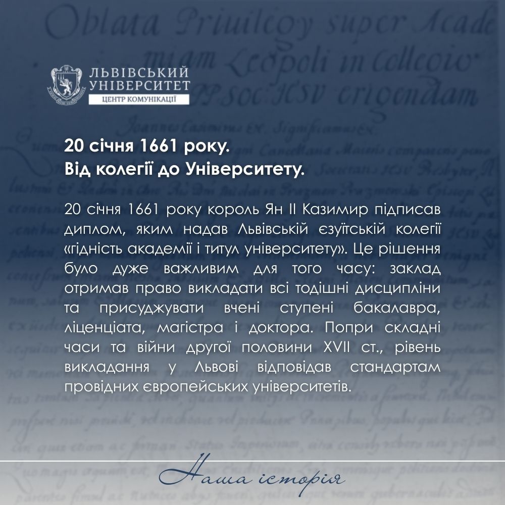365 років інтелектуальної сили. 365 років інституційної незламності. Львівський університет подолав історичний шлях від королівського привілею 1661 року до статусу інтелектуального форпосту української нації.