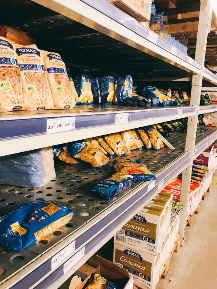 Атмосфера в Метро спокійна. Хоча певне напруження таки відчувається. Кобіта, яка розкладає товар на полиці, чомусь роздратована 💆♀️ Ну а вони, полиці, порожніють.