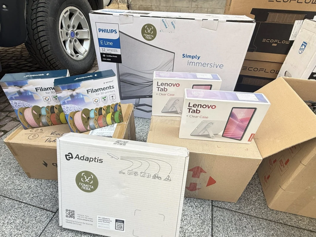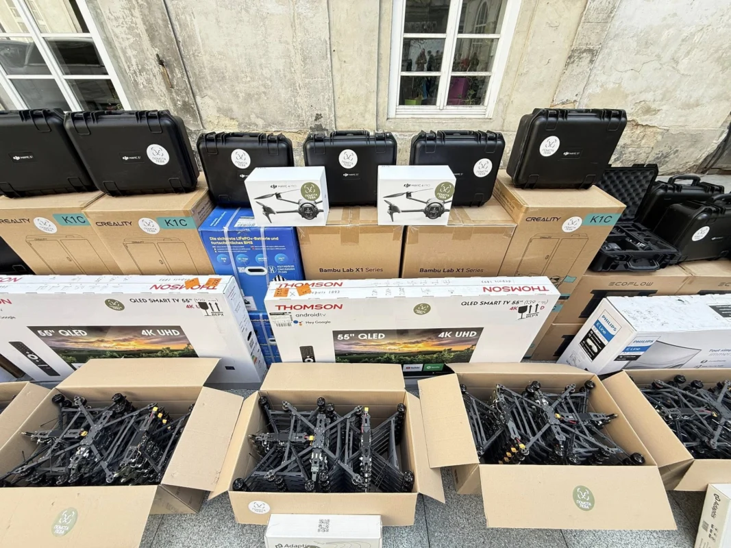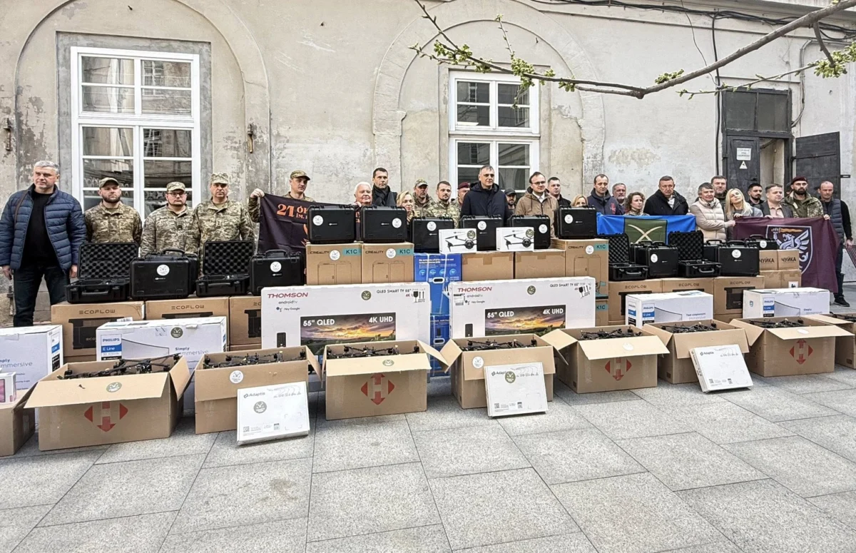 Сьогодні передаємо від громади Львова нашим захисникам: зарядні станції (25 шт), анти-тепловізійні пончо (24 шт), Matrice 4T (16 шт), планшети (16 шт), 3D-принтери (4 шт), Starlink (5 шт), Mavic 3T (20 шт), пристрої РЕБ «Чуйка» (2 шт), Matrice 4 Pro (5 шт), передавачі (2 шт), FPV-дрони (175 шт), автомобілі (5 шт), а також необхідне додаткове обладнання — ретранслятори, антени, кабелі, технічні інструменти та спецтехніку.