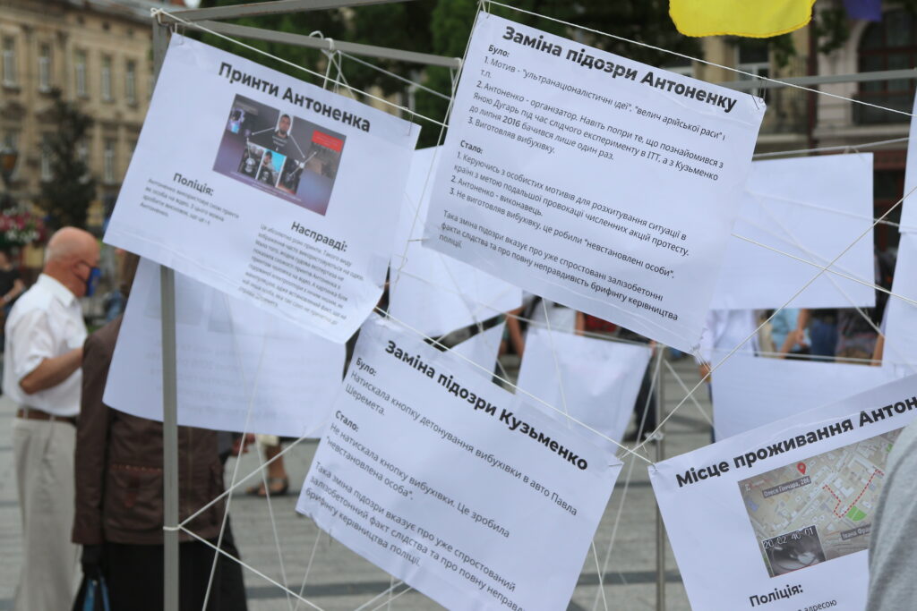 “200 днів брехні. 200 днів незаконного утримання за ґратами Андрія Антоненка, Юлії Кузьменко та Яни Дугарь. 200 днів як справжніх убивць Павла Шеремета не знайшли, а призначили”, – зазначають організатори акції.