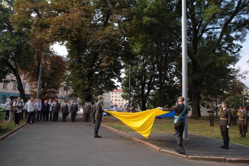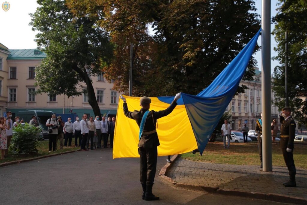 Біля будівлі Львівської обласної державної адміністрації традиційно провели урочисту церемонію підняття Державного Прапора України.