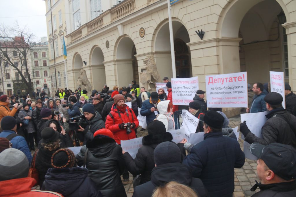 Сьогодні, 14 лютого, під стінами Ратуші відбулася акція проти будівництва сміттєвого заводу на вулиці Пластовій, до якої долучились десятки стурбованих львів`ян.