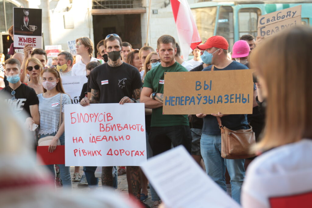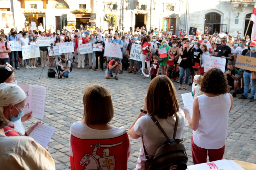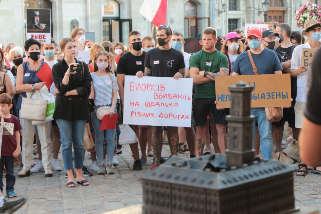 Сьогодні, 13 серпня, у центрі Львова відбувалась акція солідарності з білоруським народом у боротьбі за свободу та гідність, за право волевиявлення та супроти диктатури, пише 4studio.
