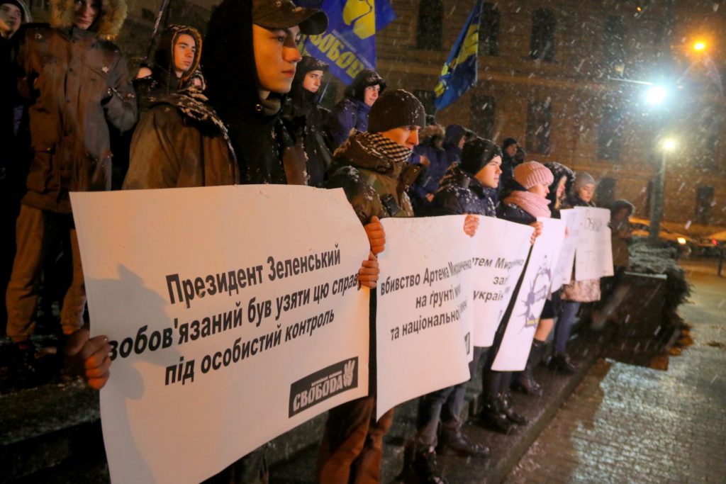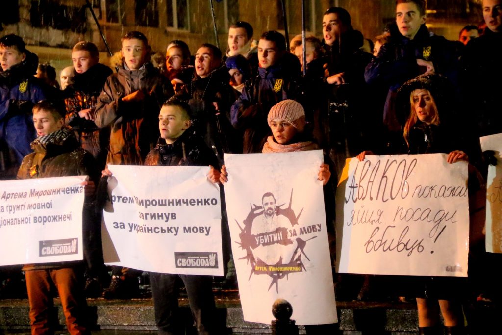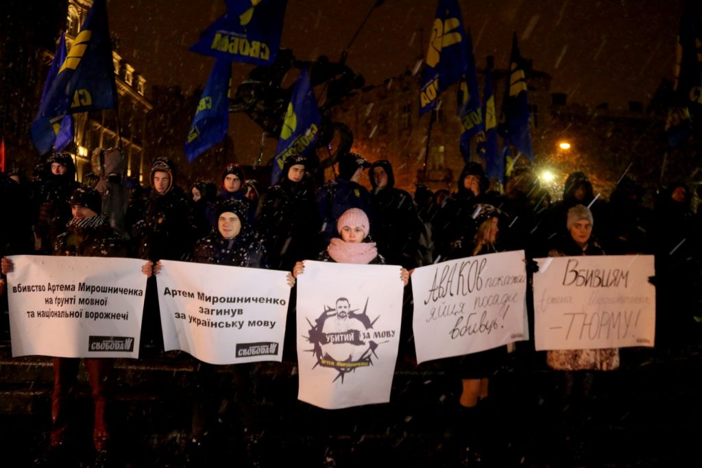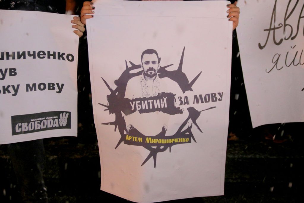 Активісти вимагали від влади належно кваліфікувати вбивство українського патріота Артема Мирошниченка, якого до смерті побили за українську мову у Бахмуті.