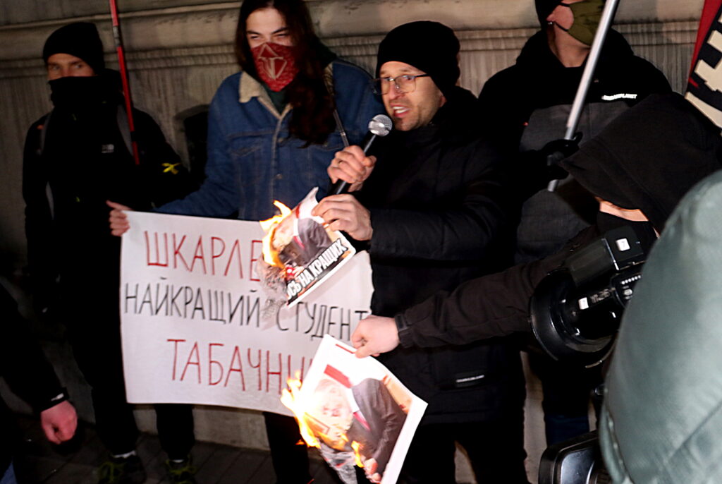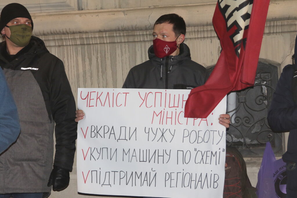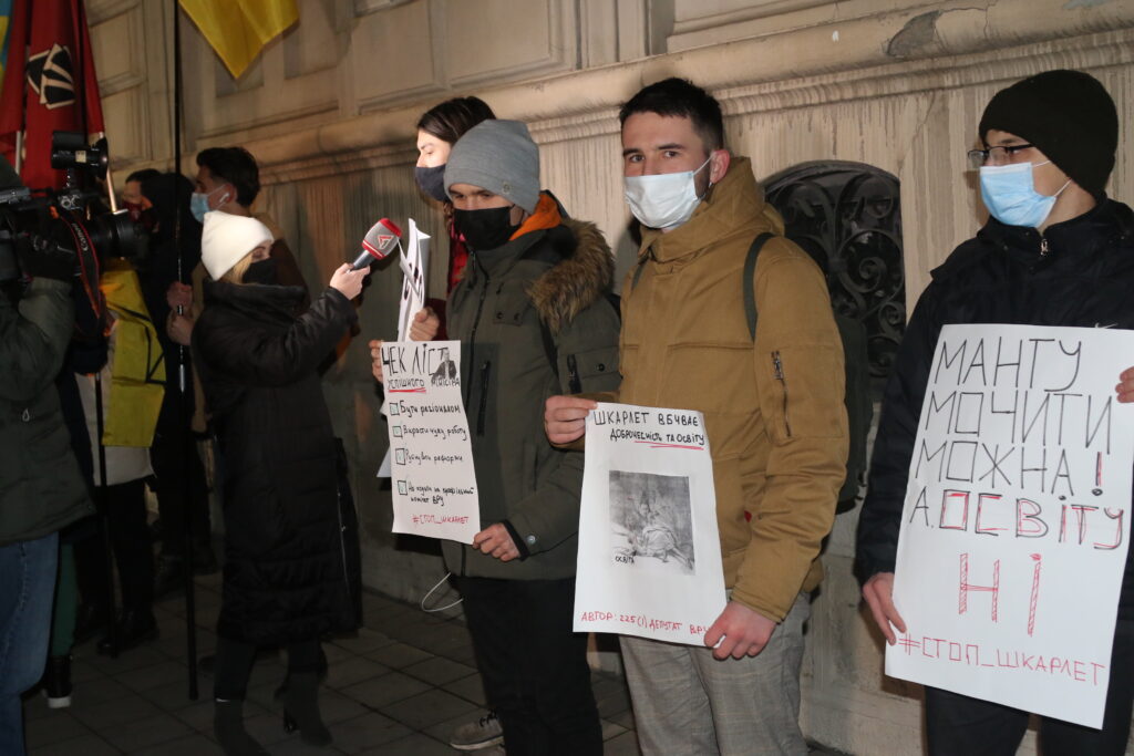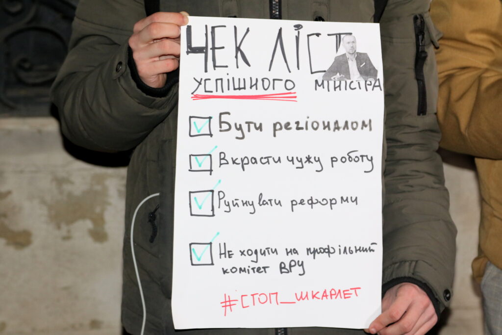 “Згідно з рішенням Верховної Ради, 17 грудня Сергій Шкарлет призначений міністром освіти. Його кандидатуру обрано не враховуючи думки науковців, студентів, батьків та навіть освітнього комітету Верховної Ради. За кілька місяців роботи на посаді в.о. міністра освіти Шкарлет показав, що не тільки не гідний, але й не здатний очолювати це відомство. Він провалив підготовку до навчального року, педагоги не отримали жодної допомоги для купівлі засобів індивідуального захисту, а сфера освіти найбільше постраждала під час підготовки Держбюджету на 2021 рік. Окрім того, Шкарлет так і не визнав плагіат у своїх роботах, натомість його «захисники» погрожували громадським активістам. Ми вимагаємо негайного відсторонення Сергія Шкарлета з посади міністра освіти України!”, – заявили активісти.