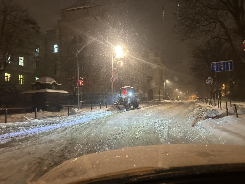 З другої ночі маємо безперервний сніг у Львові, до прибирання міста задіяно 95 одиниць техніки, понад 1400 працівників та додатково 55 мотоблоків