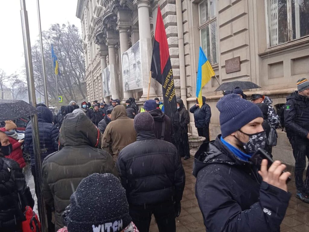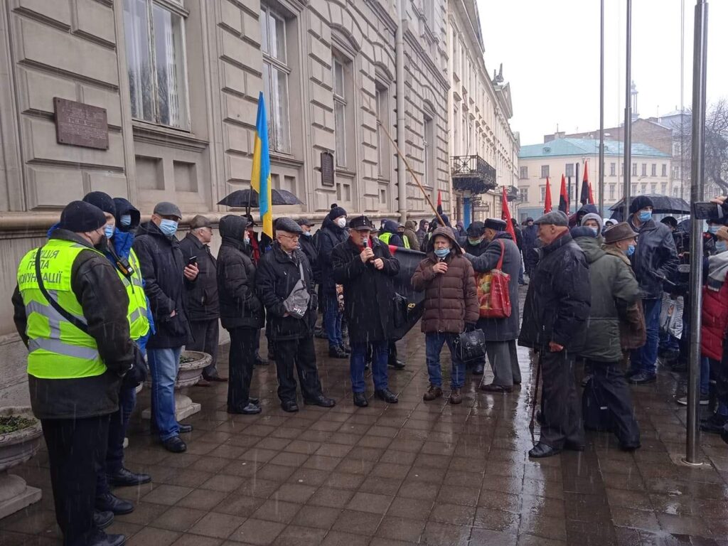У Львові під стінами обласної державної адміністрації відбувається протест проти збільшення вартості комунальних послуг.