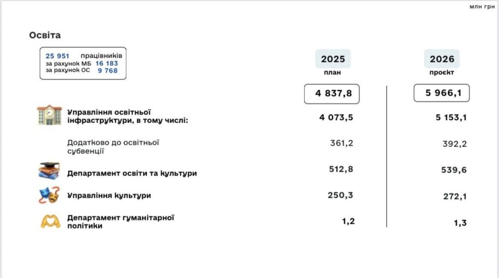 • 475 млн грн — на міські освітні програми (підтримка молодих педагогів, розвиток шахів, підтримка обдарованої молоді тощо)