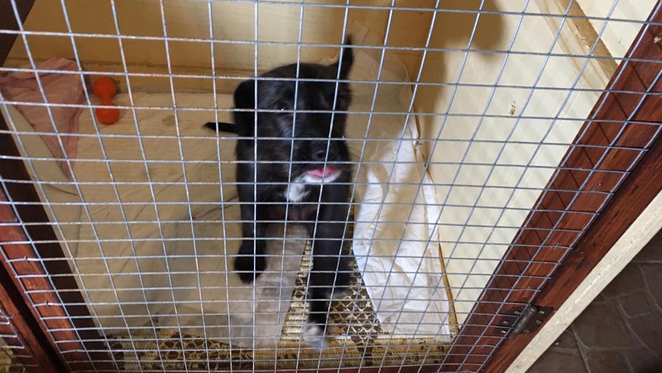 “У Тарічка, нашого цуценятка, теж переламаний хребет доволі високо, в грудному відділі. Малоймовірно, що він буде ходити. Можливо, у нас є шанс на спінальну ходу, але швидше за все це буде візочок.. однак його треба буде навчити з цим жити. Загалом хлопчик позитивний”, — каже Оксана Голощапова.