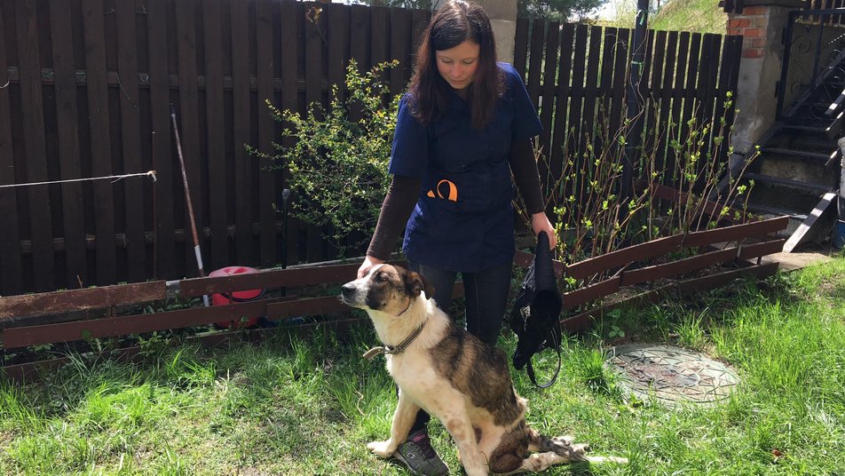 Реабілітологиня Оксана Голощапова працює на Львівщині. За професією жінка — лікарка-ветеринар. Для того, щоб дати тваринам шанс на нове життя, вона пройшла спеціальні курси. Зараз реабілітологиня працює з чотирма собаками з інвалідністю.