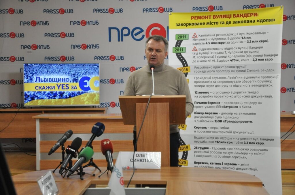У п’ятницю, 13 листопада відбулася спільна прес-конференція ексміністра інфраструктури Володимира Омеляна та народного депутата, кандидата на міського голови Львова Олега Синютки на тему “Ремонт вулиці Бандери у Львові: куди зникають мільйони”.