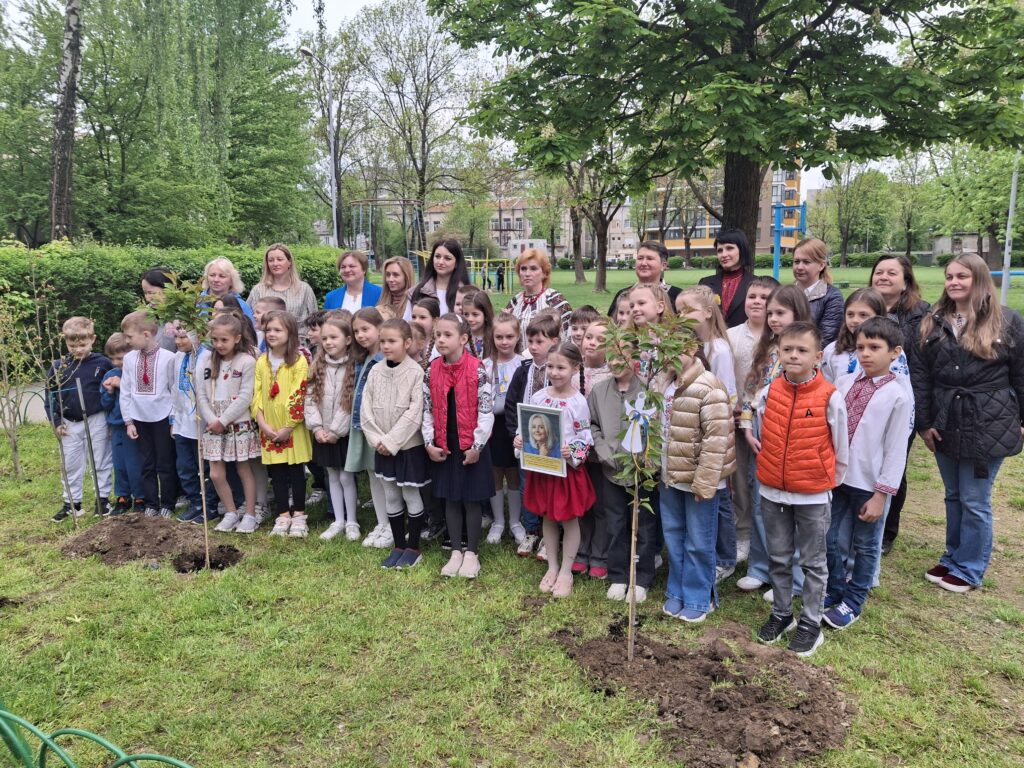 Сьогодні, 30 квітня, на подвір’ї ліцею 75 імені Лесі Українки висадили 3 сакури на честь Ірини Фаріон.