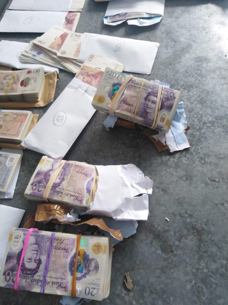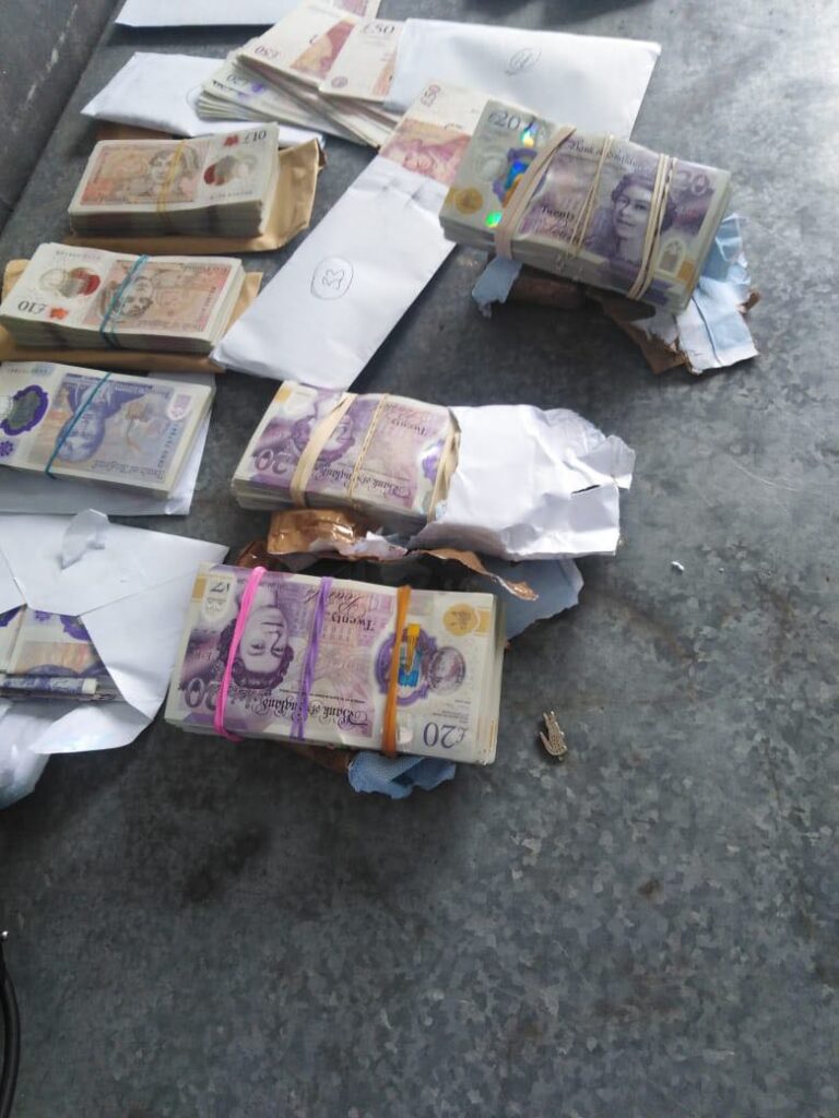 У багажному відділі автомобіля марки «Мерседес» прикордонники спільно з митниками у двох коробках виявили незадекларовану валюту – 23 170 фунтів стерлінгів, що станом на 28.05.2021 року за курсом Національного банку становить 903 722,68 грн.