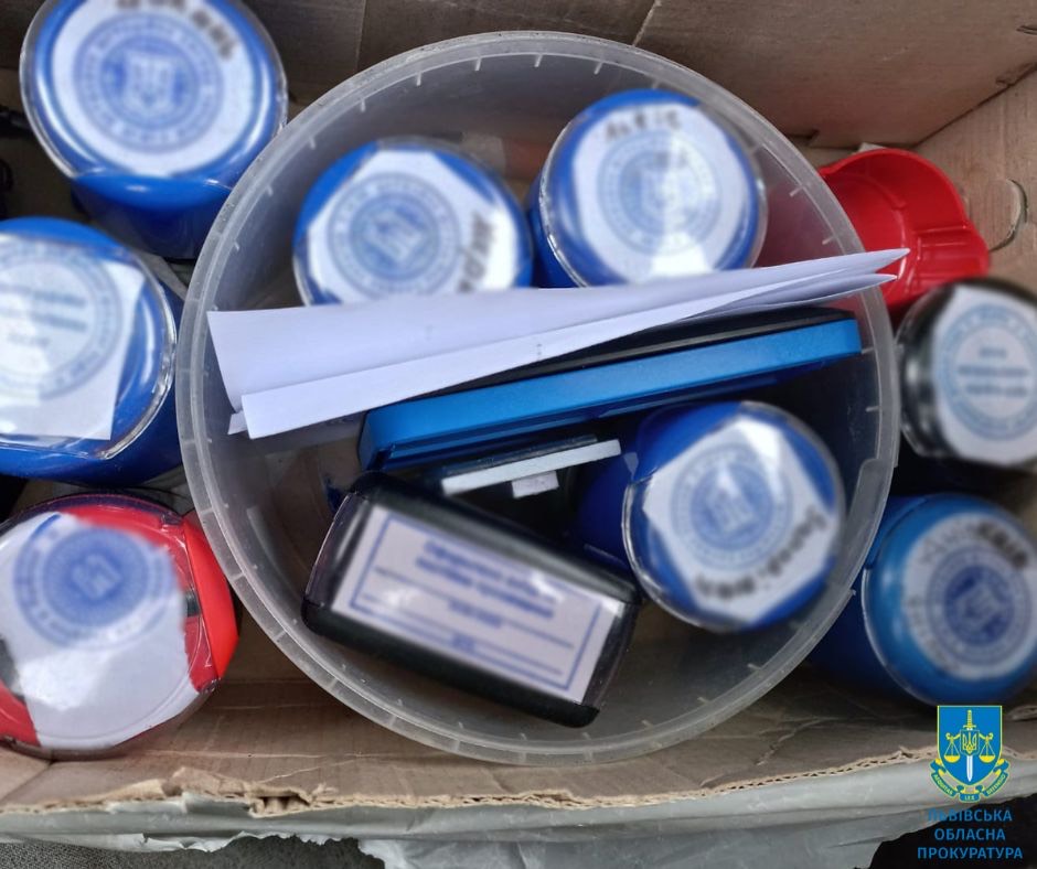 Під час обшуків правоохоронці виявили та вилучили печатки, штампи, грошові кошти, мобільні телефони, банківські карти та інші докази незаконної діяльності.