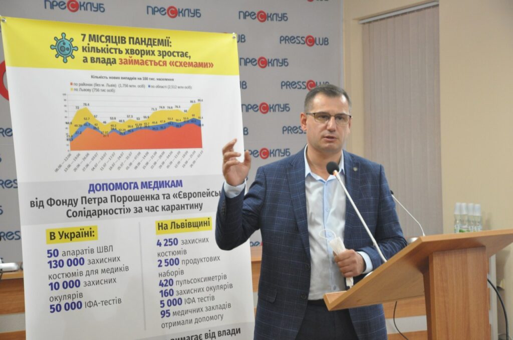 Представники «Європейської Солідарності» – народний депутат України, кандидат на посаду голови Львівської ОТГ Олег Синютка, кандидати в депутати Львівської обласної ради: голова Українського лікарського товариства у Львові Олег Дуда та сімейна лікарка Центру первинної медико-санітарної допомоги міста Червоноград Анна Ярмола, виступили на прес – конференції з приводу бездіяльності влади у боротьбі з наростаючою пандемією Covid-19.
