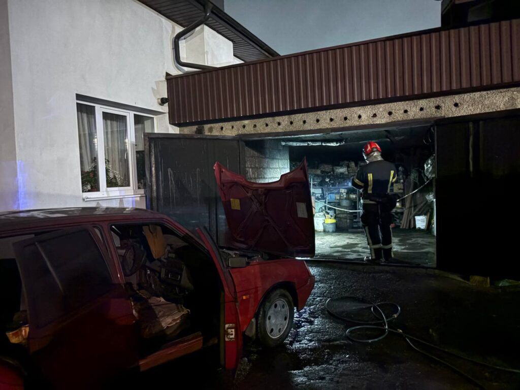 Учора ввечері, близько 23:28, надійшло повідомлення про загоряння в гаражі на вул. Шухевича. У автомобілі “Славута” зайнялася запаска, площа горіння становила приблизно 0,5 м²