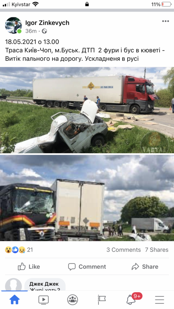 - На трасі “Київ – Чоп” не розмились вантажівки, є постраждалі, скрін повідомлення