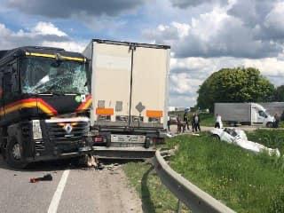 На трасі “Київ – Чоп” не розминулись вантажівки, є постраждалі.