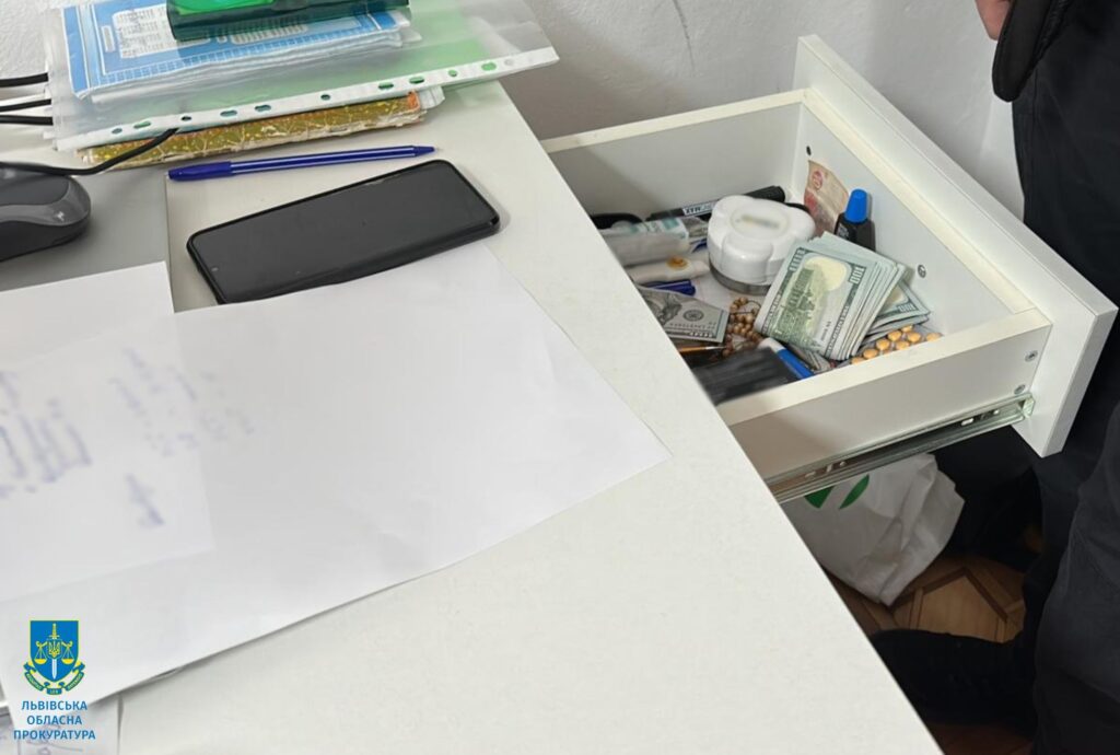 Під час обшуків в його робочому кабінеті виявлено та вилучено медичну документацію, чорнові записи та гроші.