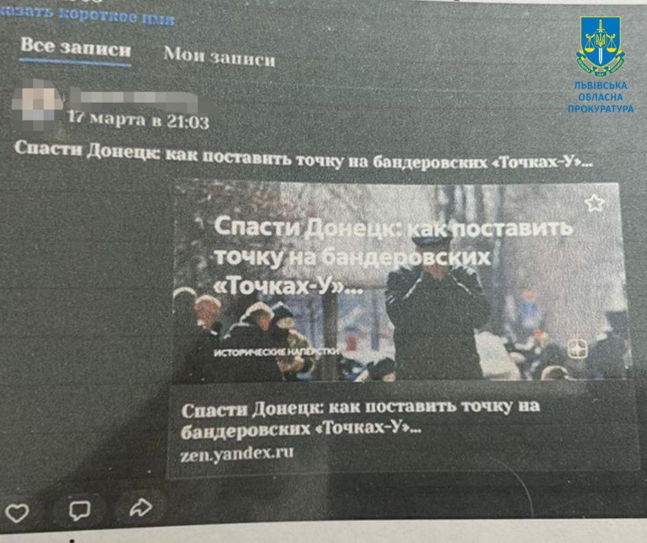 За процесуального керівництва прокурорів Львівської обласної прокуратури до суду скеровано обвинувальні акти стосовно львів’янина за фактом поширення матеріалів, в яких міститься заперечення збройної агресії російської федерації проти України (ч. 2 ст. 436-2 КК України). А також мешканця одного із міст Львівщини за фактом пропаганди війни (ст. 436 КК України).