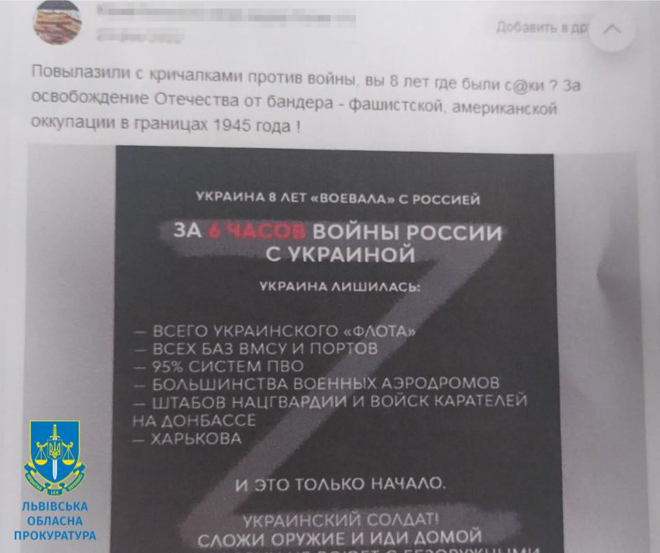 З початку повномасштабного вторгнення, чоловік продовжував розповсюджувати дописи із пропагандою війни.