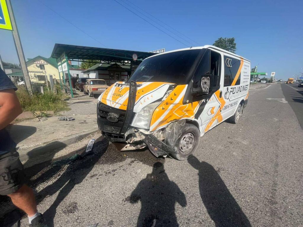 У Солонці навпроти заправки WOG ДТП за участі буса та Тесли.