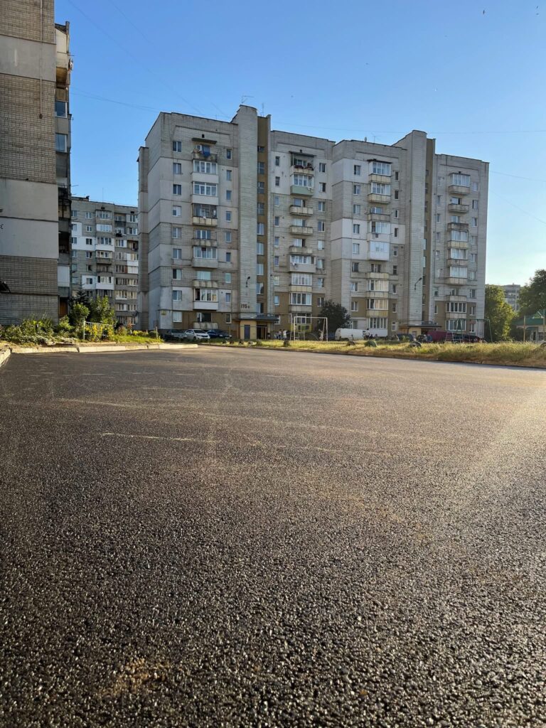 Учора було завершено перший етап — нове асфальтне покриття поклали на прибудинковій території біля багатоповерхівок №177 та №177/1. Сьогодні роботи продовжились біля будинку №179А. Також заплановано фінальний етап — прокладання асфальту на ділянці позаду будинку №177/1. Перед початком цих робіт було відновлено дощоприймачі, щоб ефективно відводити воду та запобігати підтопленням.