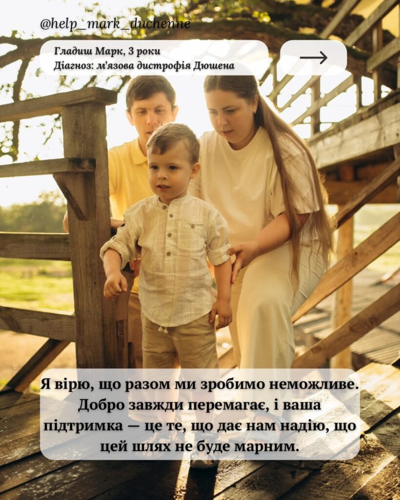 У Марчика Гладиша – важка генетична хвороба – м’язева дистрофія Дюшена. Через неї тіло дитини слабшає з кожним днем, а з часом може стати повністю нерухомим (втрачається навіть здатність ковтати і дихати).