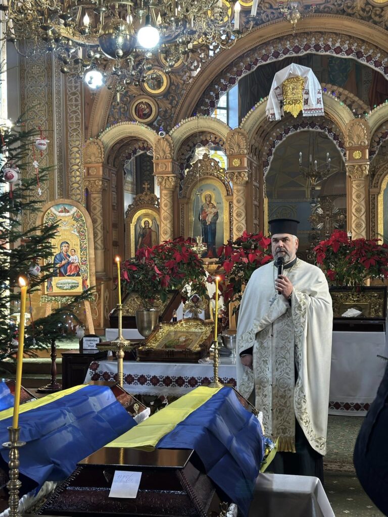 Поховання відбулося з усіма християнськими почестями. Присутні вшанували пам’ять загиблих хвилиною мовчання.