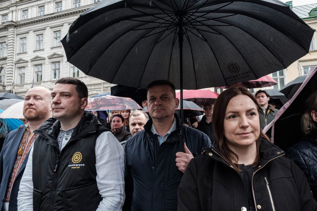 До спільного виконання «Ще не вмерла Україна» долучилися в.о. голови Львівської обласної ради Юрій Холод, начальник Львівської ОВА Максим Козицький, депутати обласної ради, працівники обласної ради та Львівської ОВА, громадськість.