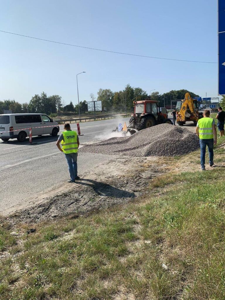 На Львівщині водій вантажівки висипав щебінь на трасу “Київ – Чоп” (ФОТО)