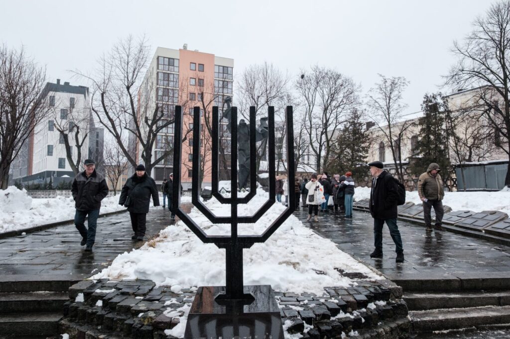 Сьогодні, у Міжнародний день пам’яті жертв Голокосту, у Львові біля Меморіалу пам’яті жертв Львівського єврейського гетто відбулося віче. Присутні вшанували пам’ять мільйонів людей, знищених нацистським терором, а також жертв сучасної російської агресії.