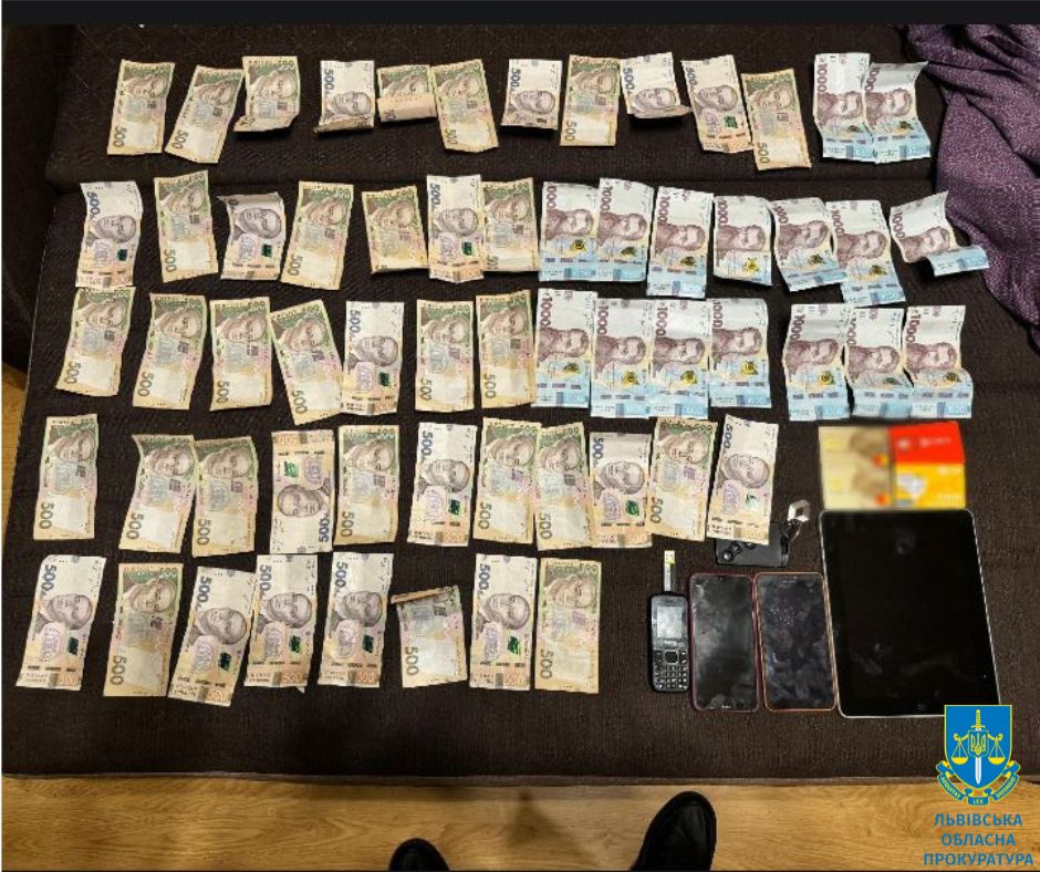 За наслідками проведених обшуків, у фігурантів виявлено та вилучено грошові кошти, банківські картки, мобільні телефони, чорнові записи та автомобіль.