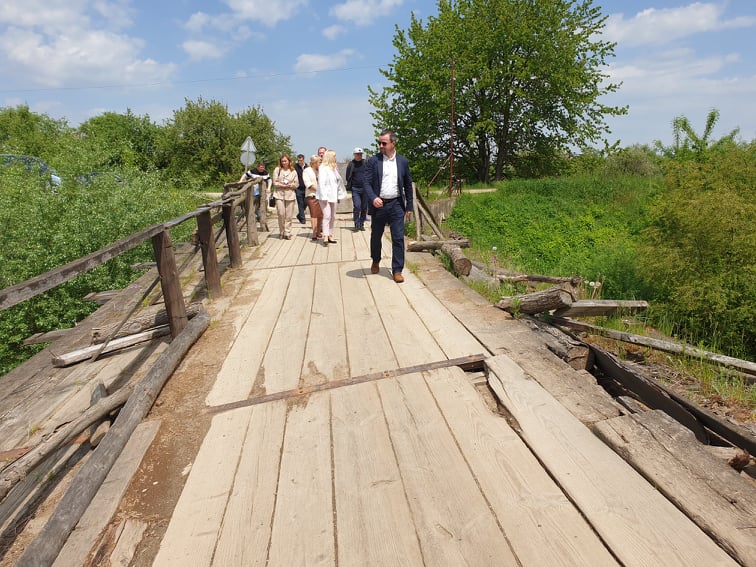 Депутати Львівської обласної ради 25 травня оглянули аварійний дерев’яний міст через річку Дністер між селами Поляна і Монастирець.