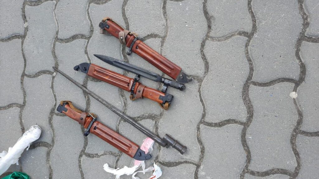 Затриманий громадянин України намагався продати холодну зброю, носіння та збут якої обмежено законом. Серед «товарів на продаж» правоохоронці виявили та вилучили 3 багнети до автомата Калашникова, багнет до гвинтівки Мосіна та багнет до карабіну СКС.