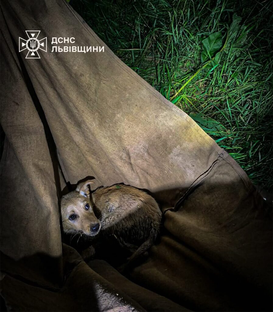 Жінка не змогла дістатись до нього самотужки, тож викликала рятувальників. Надзвичайники витягло собаку з пастки й передало його тій же жінці. Вона повезла бідолаху до ветеринара.