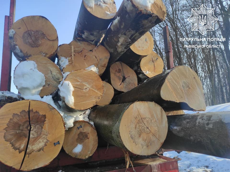 Як йдеться у повідомленні, біля населеного пункту Ямпіль, що на автодорозі Київ — Чоп, патрульні 3 батальйону виявили вантажівку Mercedes-Benz з напівпричепом із деревиною, а саме колоди дуба.