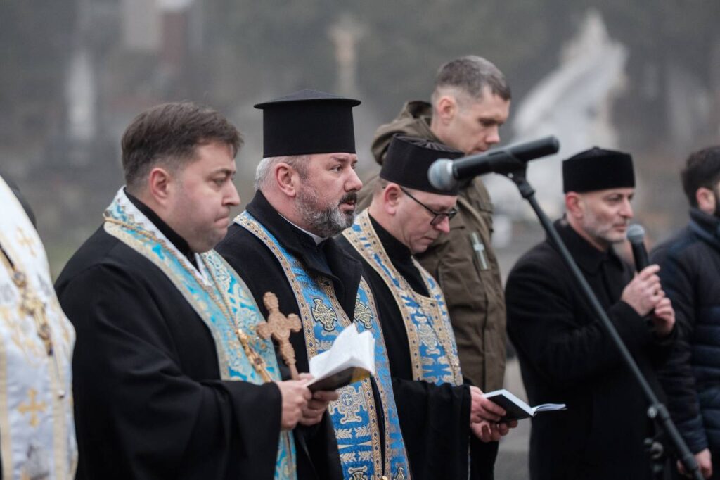 Священники відслужили чин екуменічної панахиди за загиблими Героями, а присутні поклали квіти й запалили лампадки біля могил учасників Революції Гідності – Володимира Бойківа, Юрія Вербицького, Андрія Дигдаловича, Богдана Ільківа, а також учасників російсько-української війни – генерал-майора Сергія Кульчицького та полковника Андрія Соколенка.